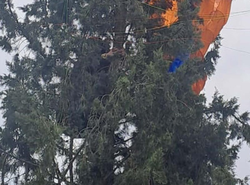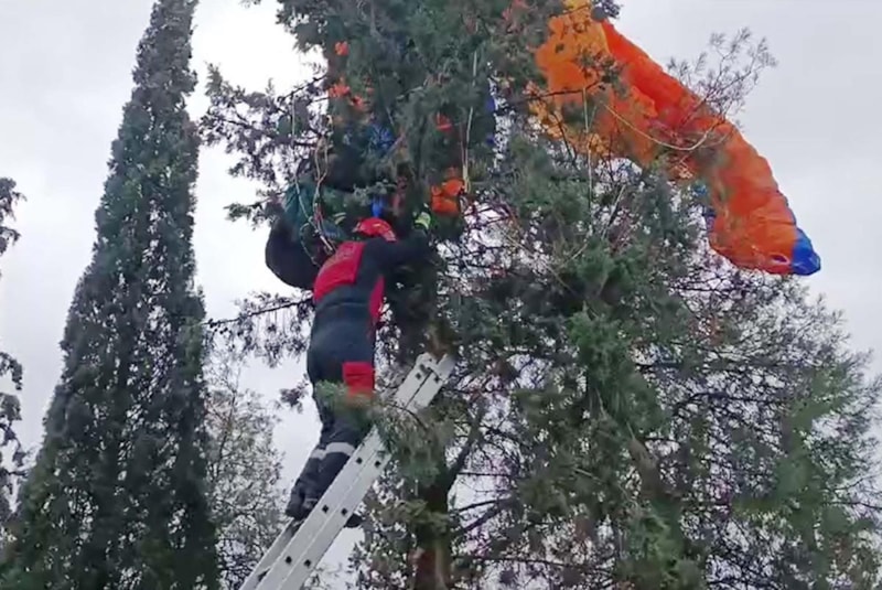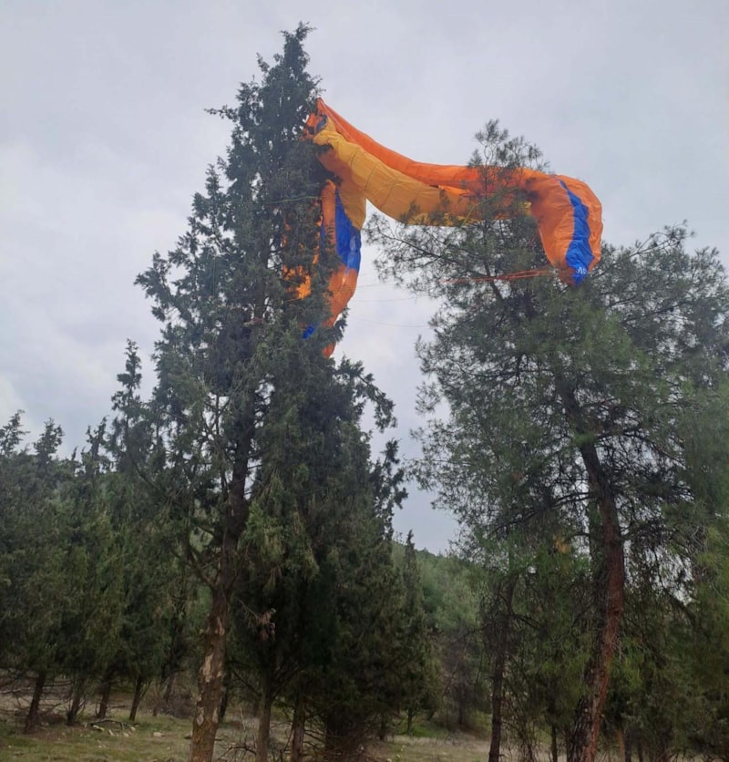 PARAŞÜTÜ AĞACA TAKILDI