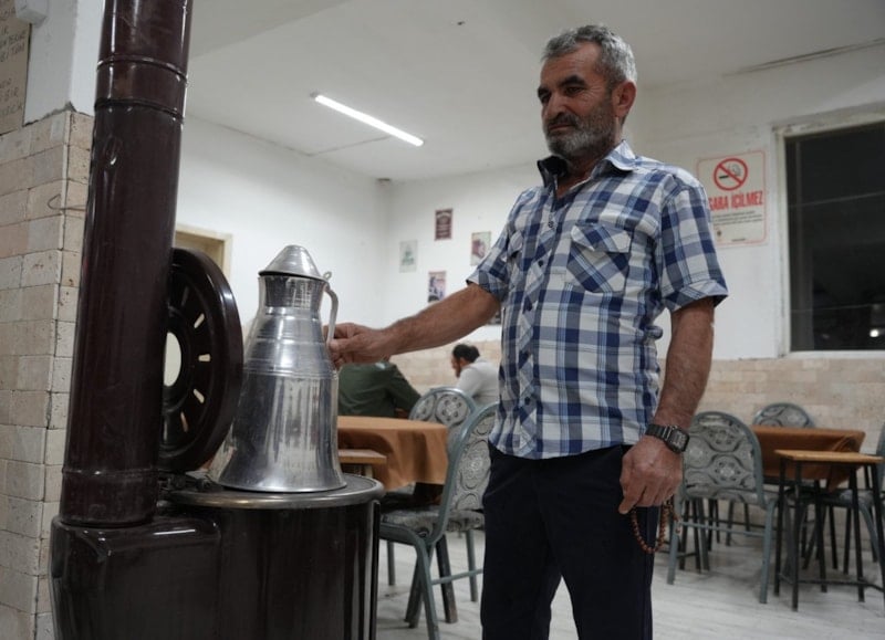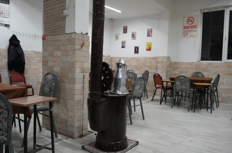 Kıraathaneye gelen müşterilerin rahatsız olmaması için havalandıran Mehmet Gezer, güzel kokması içinde hem masalara hem de soba üzerine kolonya döktü.