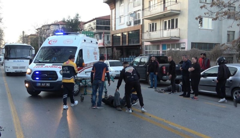 Pamukkale ilçesinde arızası nedeniyle tamirhaneye girmek için manevra yapan motosiklete, aynı yönden gelen bir başka motosiklet çarptı. Sürücülerin yaralandığı kaza anı ise bir iş yerinin güvenlik kamerasına yansıdı.