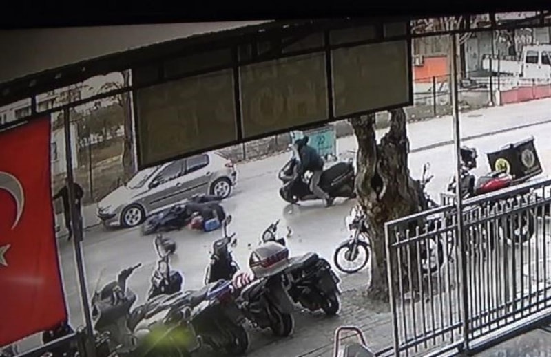 Kaza anı ise çevredeki bir iş yerinin güvenlik kamerasına yansıdı.
