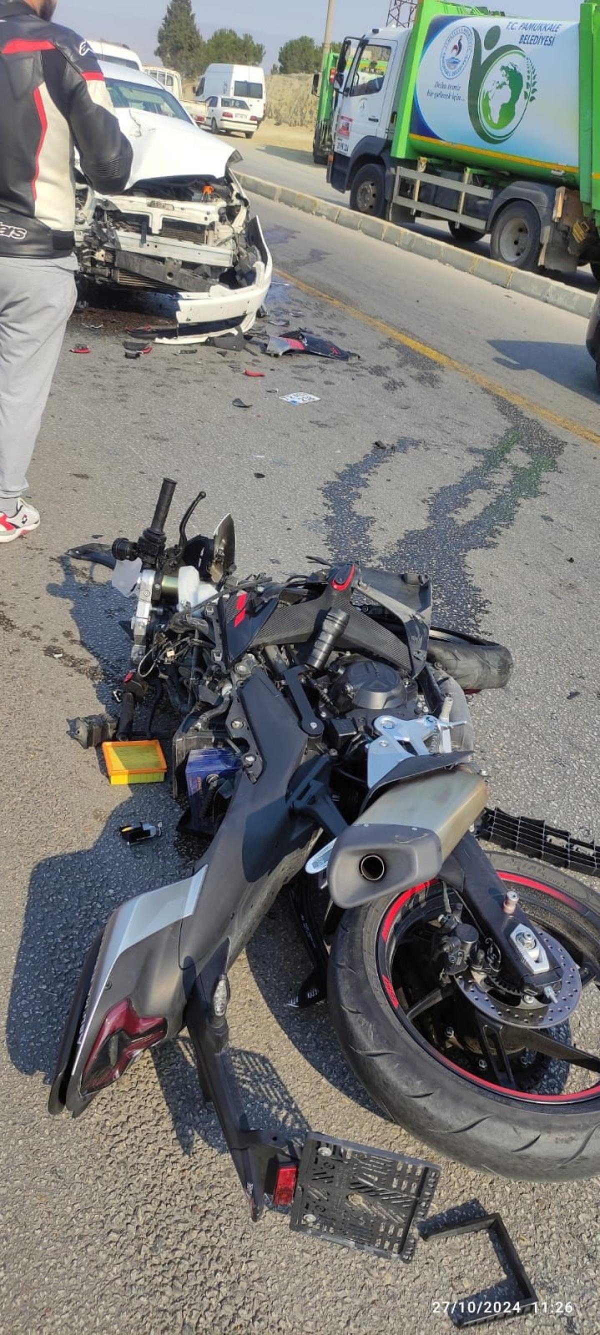 Çarpışmanın etkisiyle, motosiklet sürücüsü Abay, yaklaşık 50 metre, motosikletin arkasında oturan Ayşe Tosun (17) ise 20 metre mesafeye savruldu.
