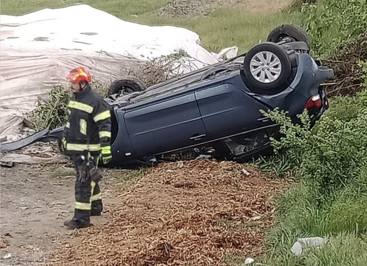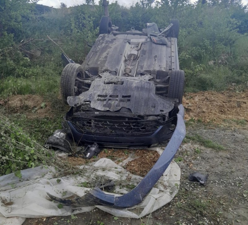 Çarpışma sonucu kontrolden çıkan otomobil, takla atarak yolun sağında bulunan araziye devrildi.