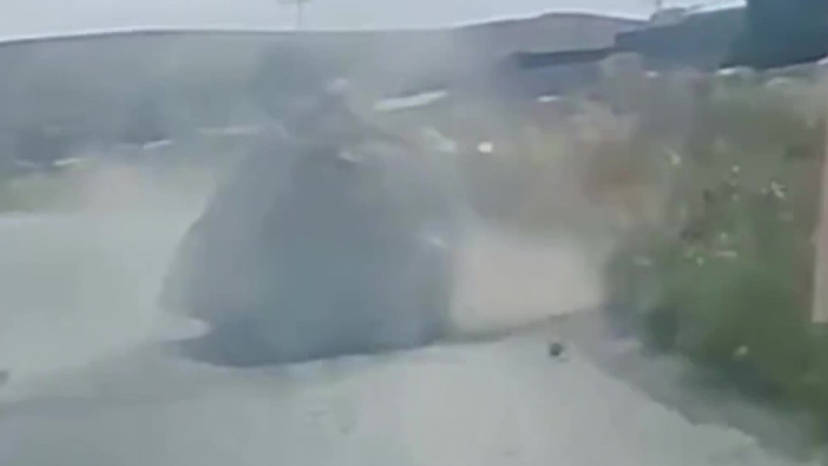 Mermer bloğun otomobilin önüne düşme anı, araç kamerasına saniye saniye yansıdı.