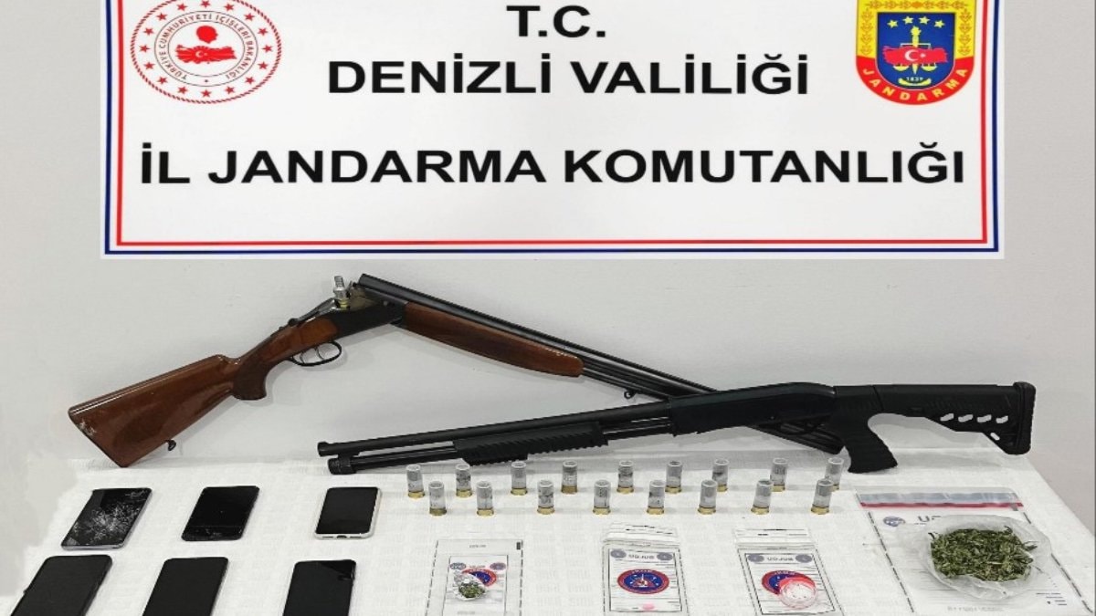 Yapılan operasyonlar neticesinde, 105 gram esrar, 5 gram metanfetamin, 1 adet uyuşturucu hap ve 2 adet av tüfeği ele geçirildi.
