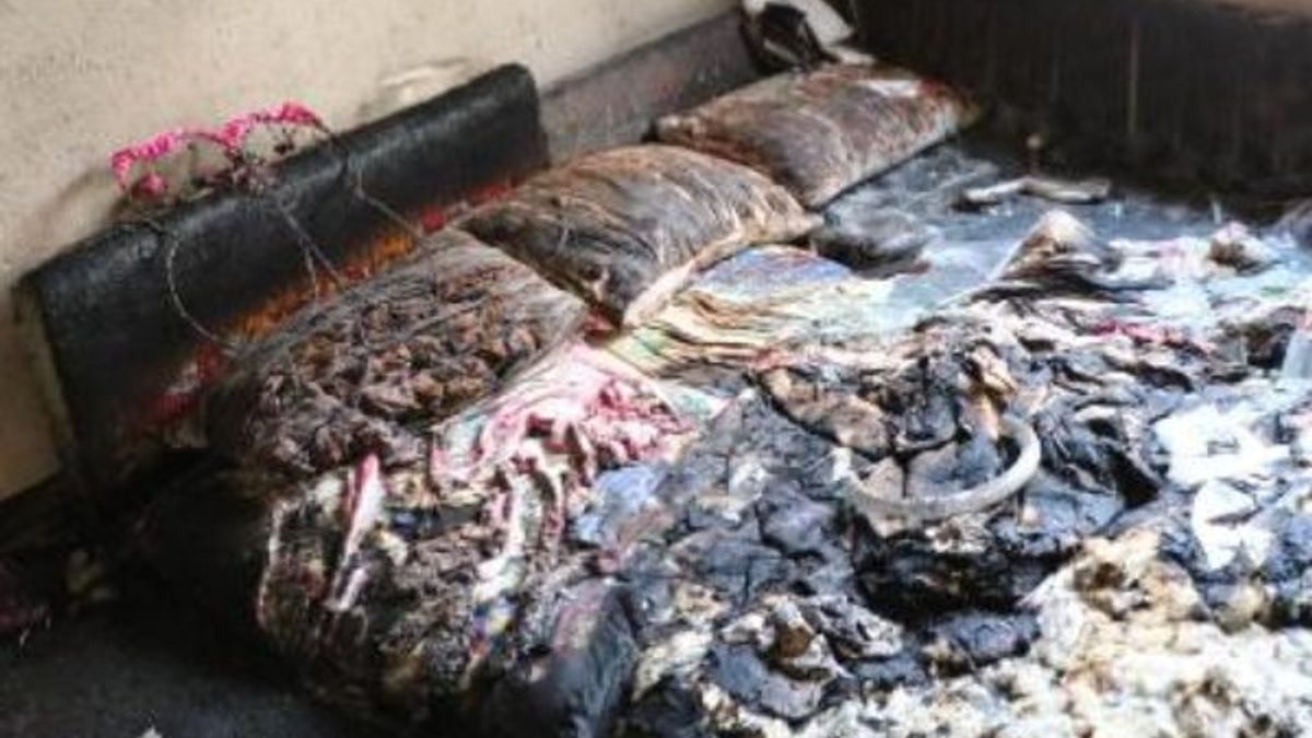 Oturma odasında başlayan ve elektrik kontağından çıktığı tahmin edilen yangın kısa sürede tüm odayı sardı.