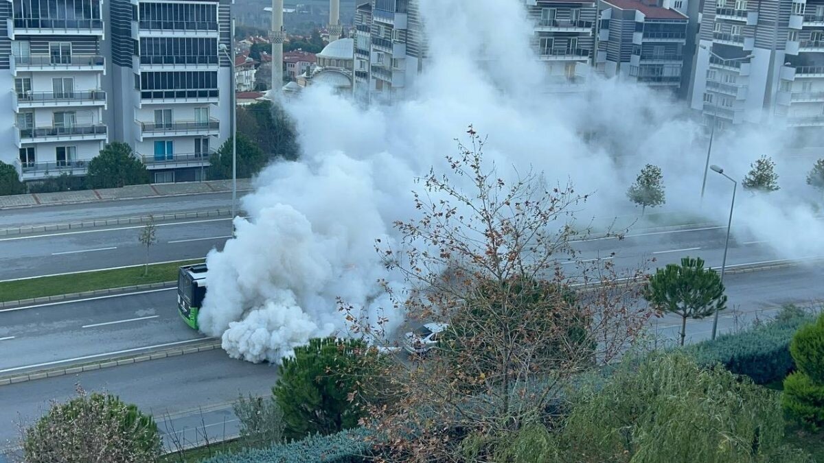 Yoğun dumanı gören bazı vatandaşlar da cep telefonuyla ana yolda yaşananları cep telefonlarıyla kayıt etti. Bir süre daha park edilen yerde çalışan otomobilin egzozu normale dönünce çıkan duman da dağıldı.