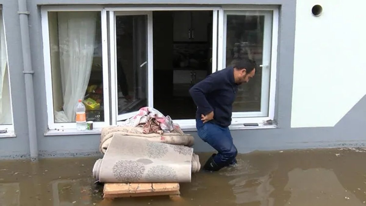 Ekipler, pompalarla evin içerisine ve çevresine dolan suyu tahliye etmeye başladı. Bölgede çalışmaların devam ettiği bildirildi.