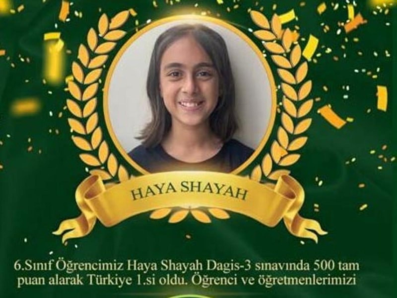 Cenazesine ulaşılan 6'ncı sınıf öğrencisi Haya Shayah'ın, geçen eylül ayında öğrenim gördüğü özel okulda Türkiye çapında girdiği sınavda 500 tam puan alıp 1'inci olduğu öğrenildi.