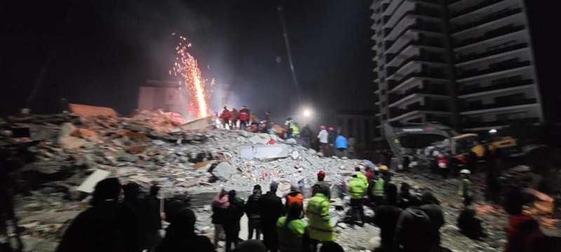 Kurtarma ekibinden bir görevli enkazdaki depremzedelerle temas kurulduktan sonra yoğun bir mücadele başlattıklarını söyledi. Kurtarma görevlisi yapılan tespitte depremzedelerin 6 katlı binanın 1'inci katında olduklarının saptandığını ve kuyu açma sistemi ile açılan galerilerden ulaşmaya çalıştıkları bilgisini paylaştı. Enkazda oluşturulan yaşam tünelinin çökmesinin önlenmesi için ekipler kalaslarla ahşap tahkimat sistemi kurarken, bazı büyük beton bloklar da vinç yardımıyla kaldırıldı. Depremzedelere ulaşılmasına az bir süre kaldığı ifade edildi.