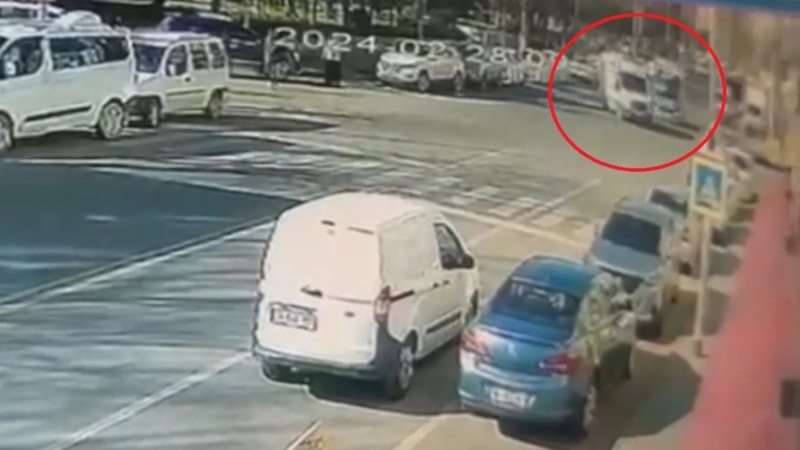 Görüntülerde, Cahit A. idaresindeki şehir içi yolcu minibüsü, sağından gelerek aniden sola dönüş yapan isteyen kapalı kasa minibüse çarpıyor.