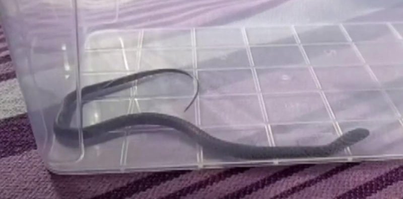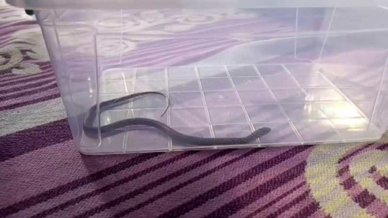 Yılanı yakalayıp bir kaba koyduktan sonra çocuklarıyla yılanı izleyen baba daha sonra hayvanı doğal ortamına geri bıraktı.