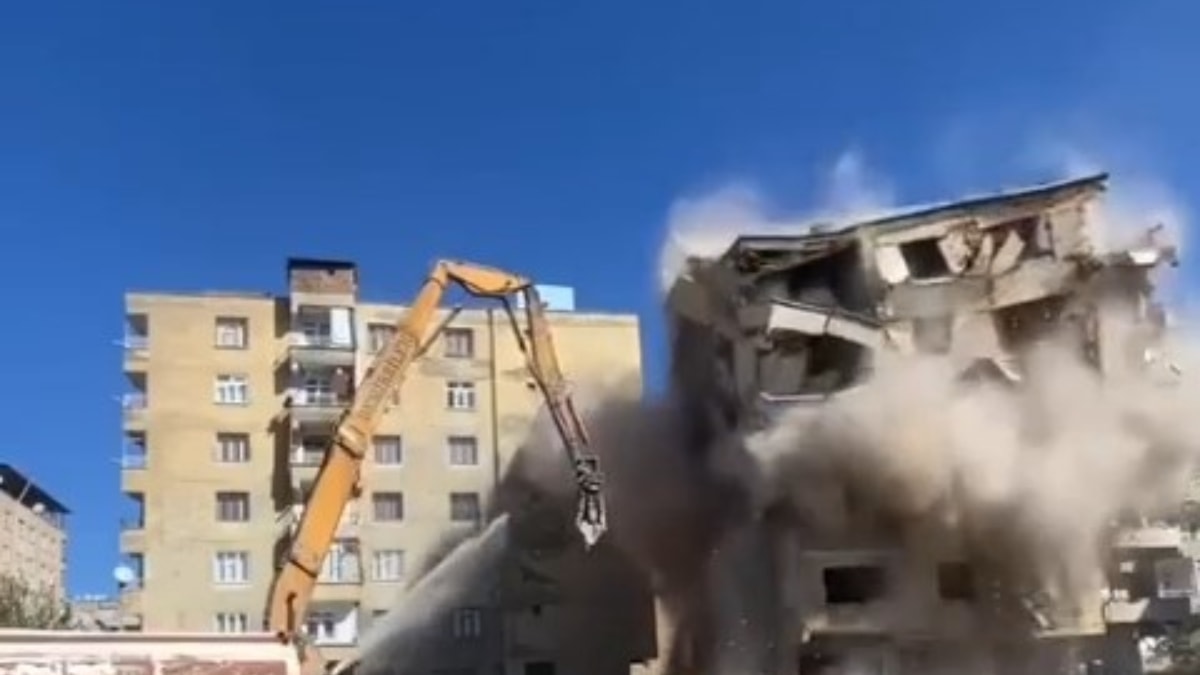 Bağlar ilçesi Mevlana Halit Mahallesi'ndeki 8 katlı bina, dün kontrollü yıkım sırasında çöktü.