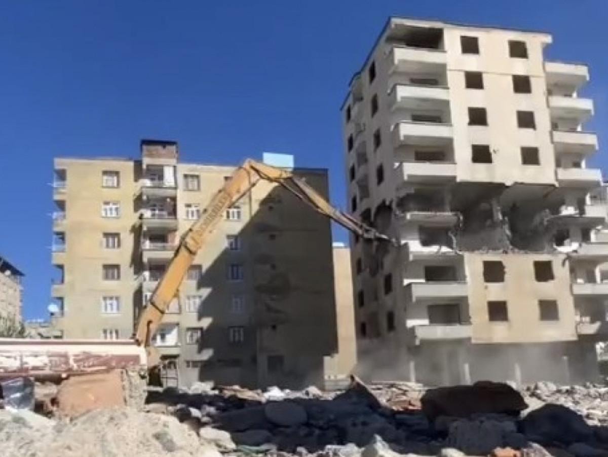 1'i boş 7 binanın yıkıldığı Diyarbakır'da, ağır hasarlı yapıların yıkım işlemleri de sürüyor.