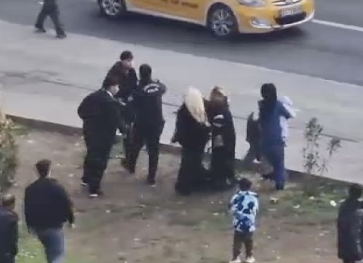 Burada karşılaşan, aralarında kadınların da olduğu iki grup, henüz bilinmeyen nedenle tartıştı.