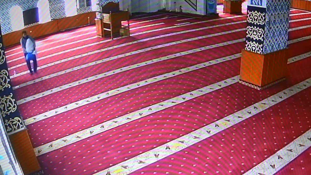 Güvenlik kameralarını izleyen imam, ses cihazının bir kişi tarafından çalındığını gördü.