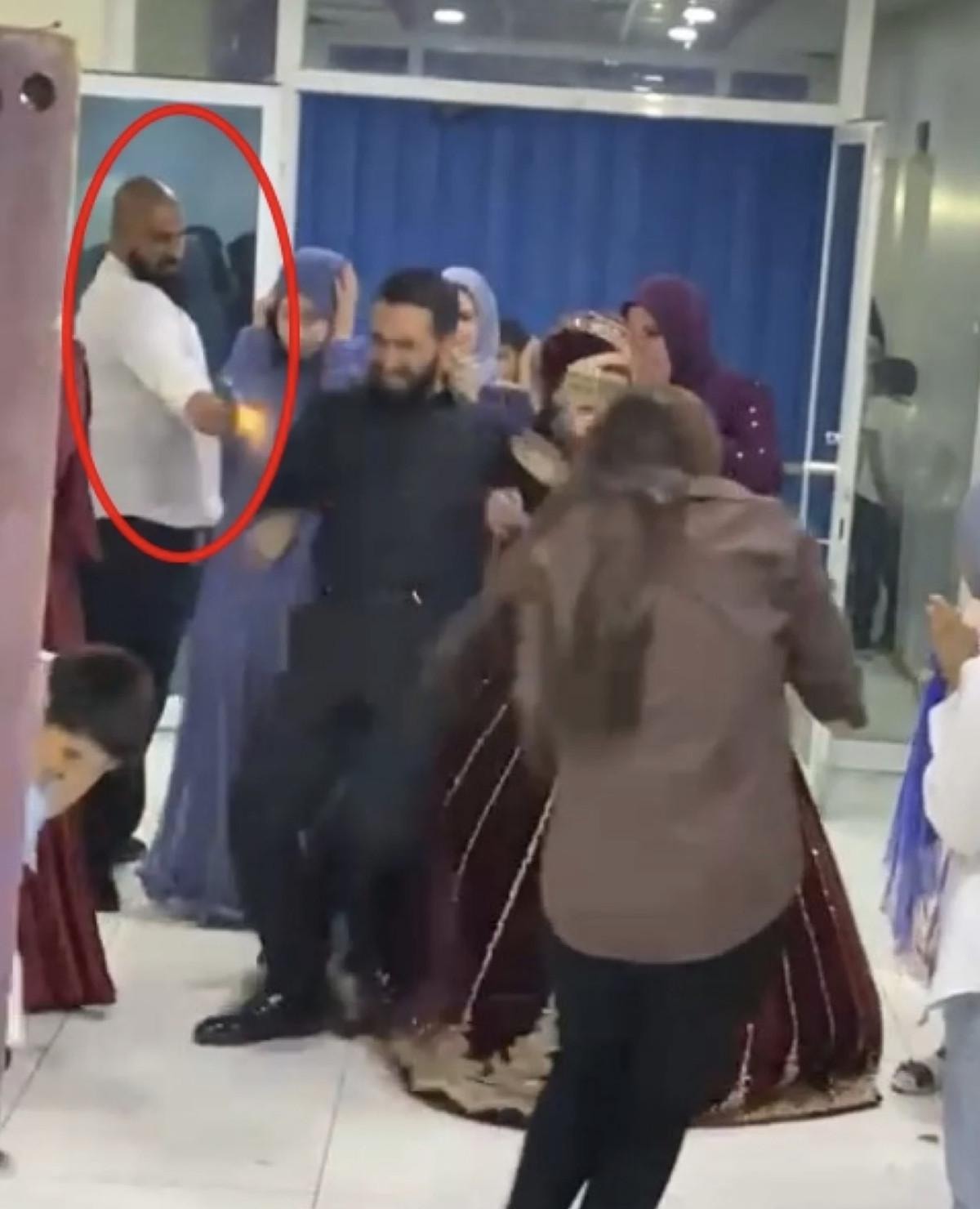 Görüntülerde damat ve gelin fotoğraf çekildiği sırada arkalarından gelen Selahattin Aktaş'ın tabancayı art arda ateşlediği görüldü.