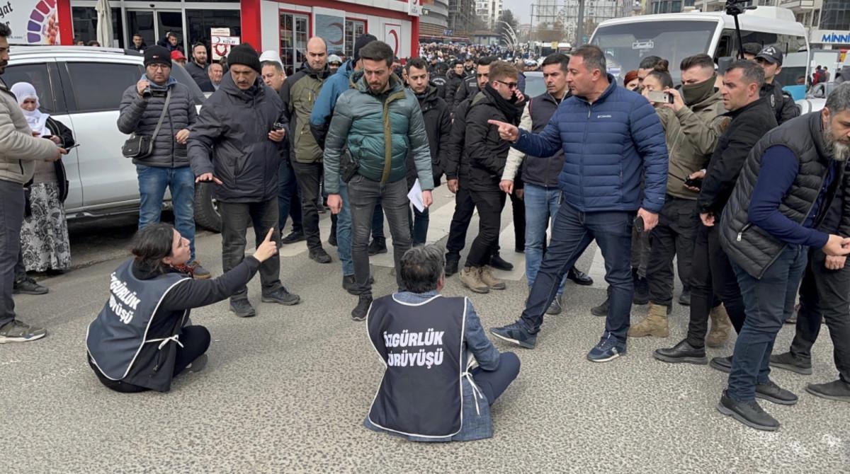 Yürüyüşe katılan DEM Parti Şırnak Milletvekili Nevroz Uysal Aslan, Siirt Milletvekili Sabahat Erdoğan Sarıtaş, Mersin Milletvekili Ali Bozan, Tunceli Milletvekili Ayten Kordu, Hakkari Milletvekili Vezir Coşkun Parlak oturma eylemi yapıp, yolu trafiğe kapattı.