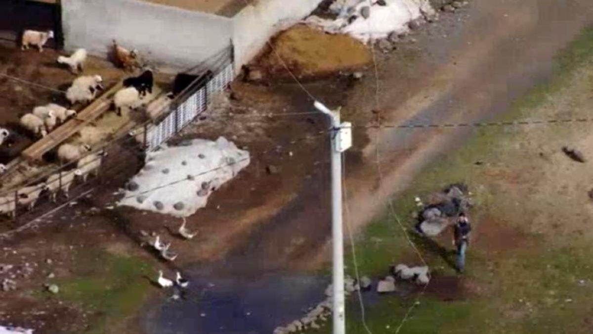 Görüntülerde drone ile kaçak kontrolü yapıldığını fark eden bir şahsın, koşarak ana hattan elektrik çekmek için bağladığı metrelerce uzunluktaki kabloyu çekerek kopardığı ve ardından toplamaya çalıştığı tespit edildi.