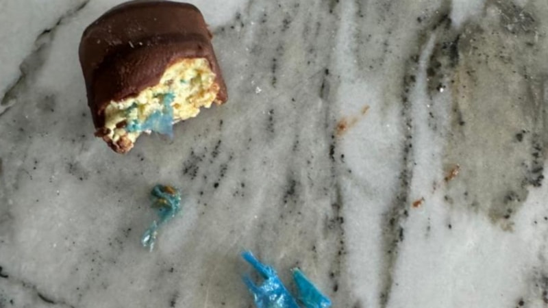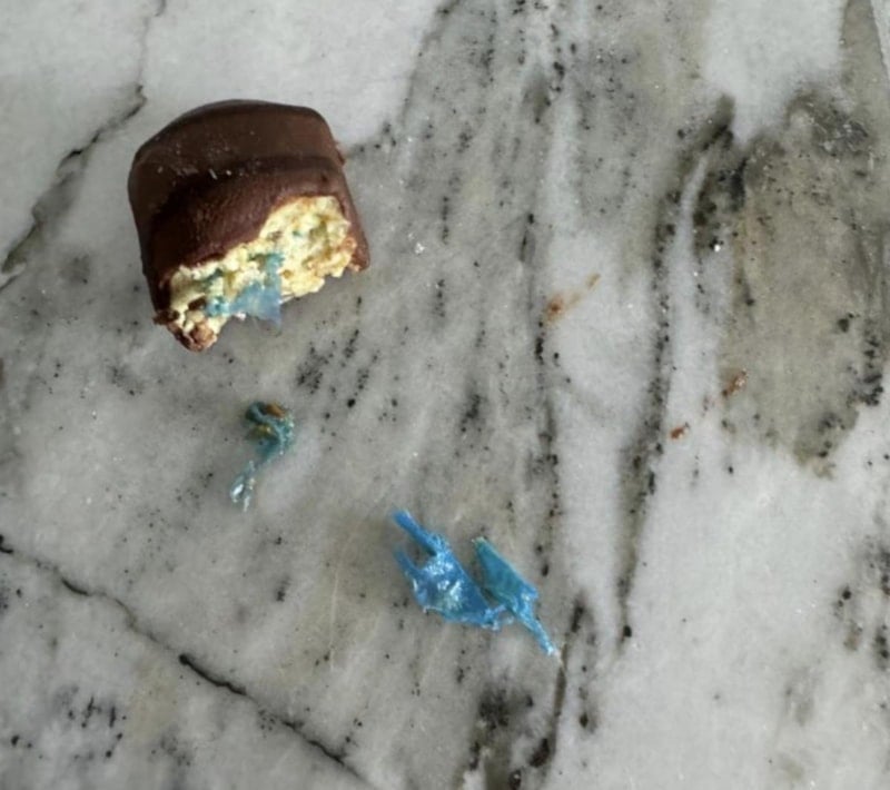 Çikolata kontrol edildiğinde ise, içinde plastik parçalar olduğu fark edildi.