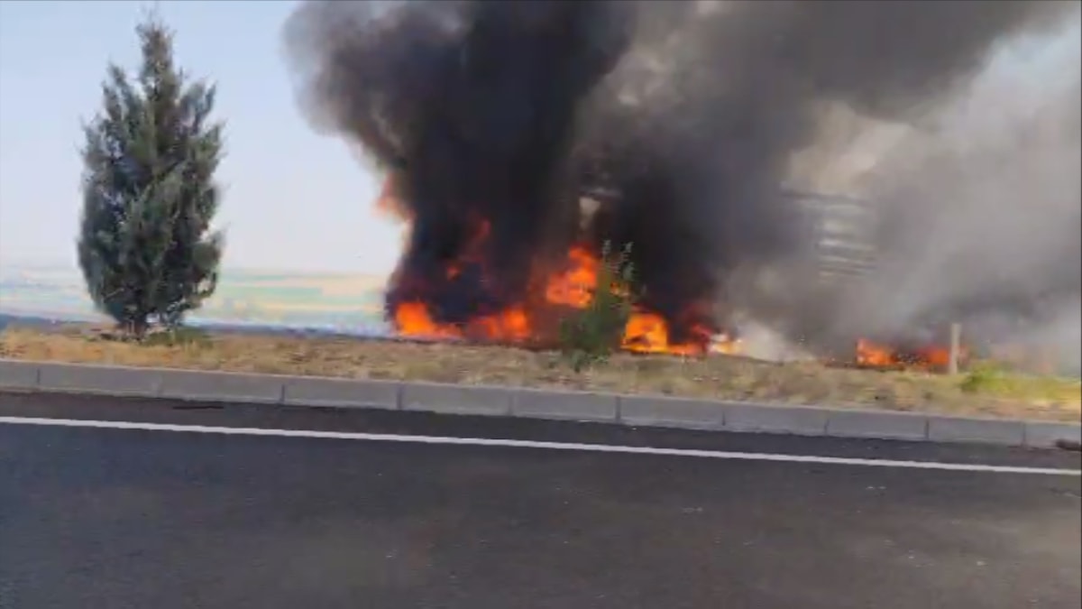 Yangın anı, cep telefonu kamerasına yansırken, sürücünün yakalanması için çalışma başlatıldı.