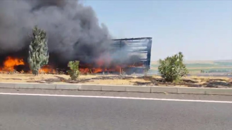 Sürücü durumu fark edip araçtan çıktıktan kısa süre sonra tır alev aldı.
