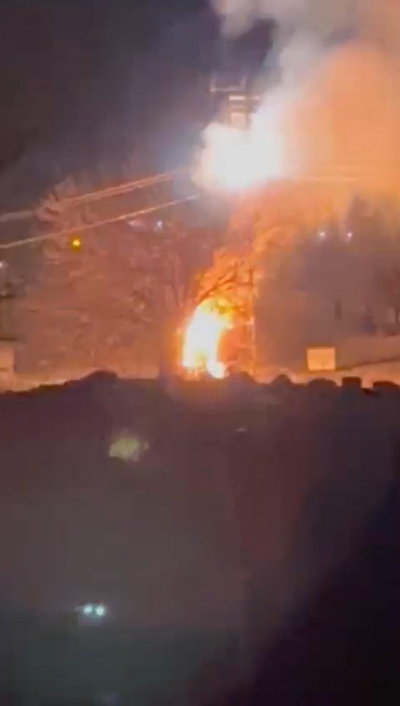 Geceyi aydınlatan patlamalar paniğe neden olurken, mahallede enerji kesintisi yaşandı.