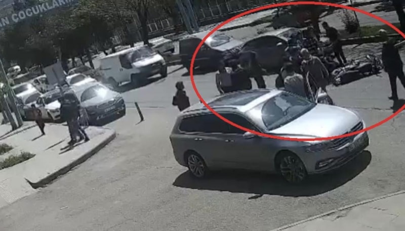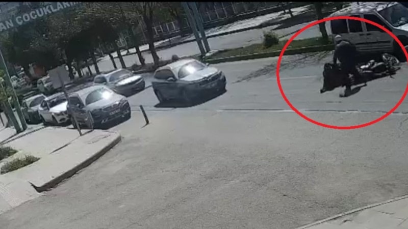 Kadın düşerken, sürücünün kontrolü kaybetmesiyle motosiklet de devrildi.
