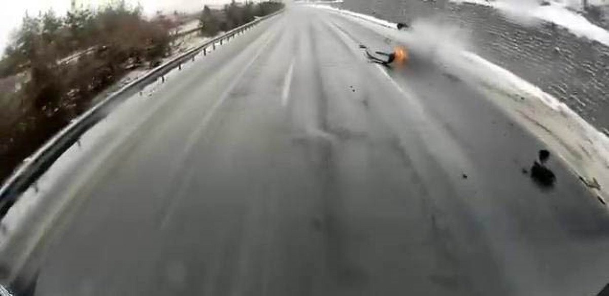 Kazanın meydana geldiği anlar, yoldan geçen başka bir aracın güvenlik kamerasına saniye saniye yansıdı.