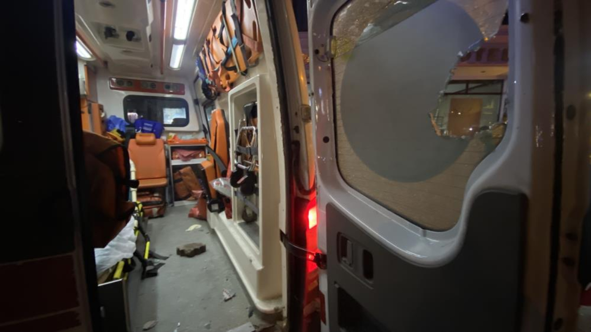 Hasta ve sağlık ekibinde yaralanan olmazken ambulansın camı kırıldı.
