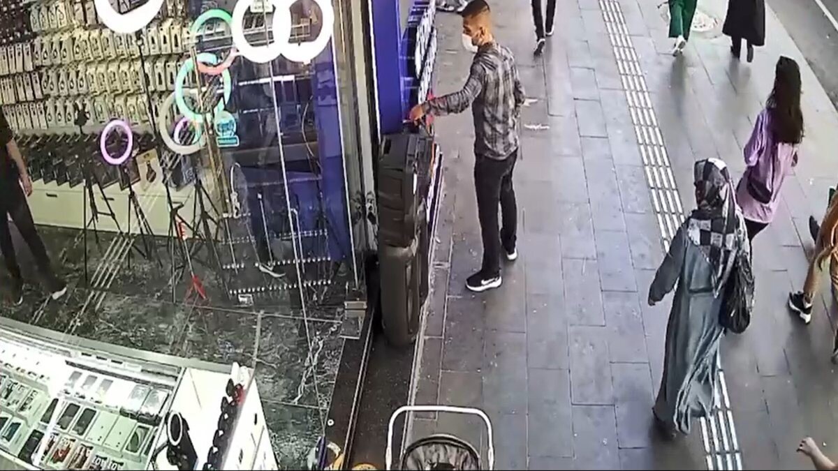 Bir süre sonra hoparlörün yerinde bulunmadığını fark eden iş yeri çalışanı, güvenlik kamerası görüntülerini inceledi.