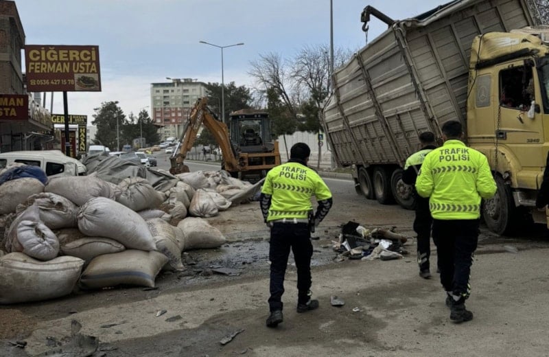 Diyarbakır'ın Silvan ilçesinde sürücüsünün kontrolünü yitirdiği saman yüklü kamyon, yol kenarında park halinde bulunan araçların üzerine devrildi.