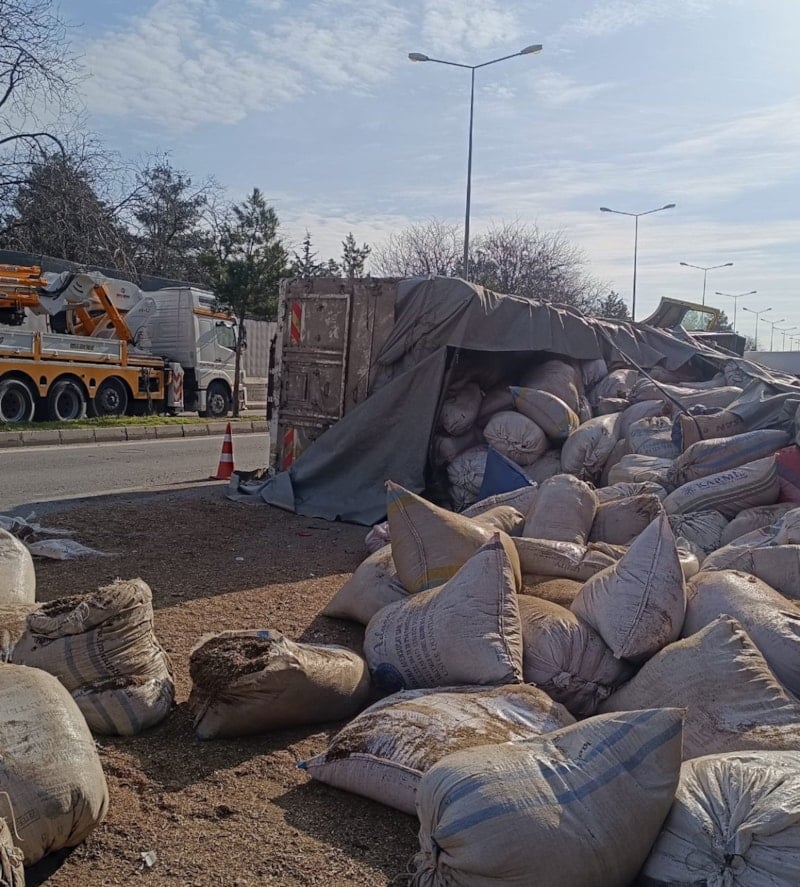 Kazada kamyon şoförü yaralanırken, ihbarla olay yerine sağlık ve polis ekipleri sevk edildi.