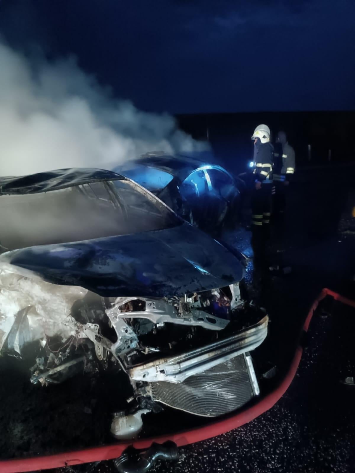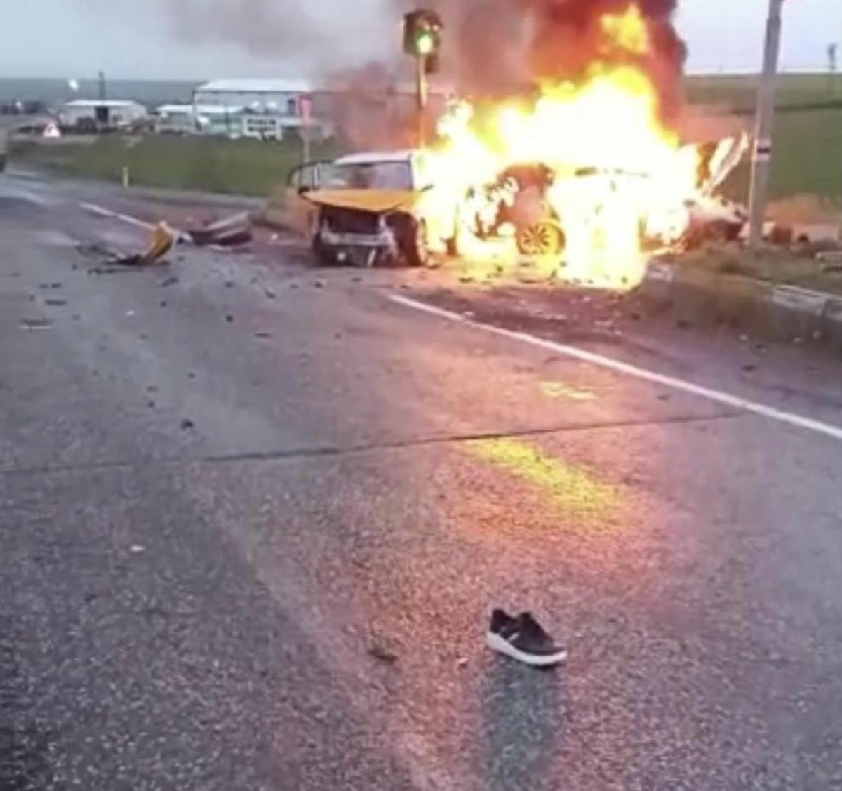 Meydana gelen kazada araçlar alevlere teslim oldu.