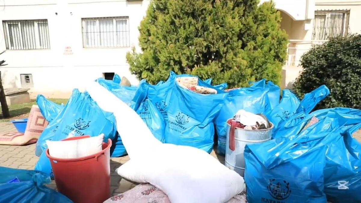Kadın kontrol için hastaneye götürülürken, çöpler evden çıkarıldı.