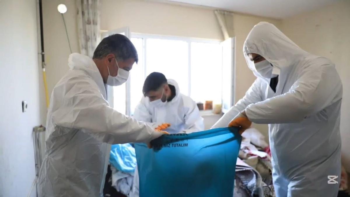 Bir kamyon çöpün çıktığı evde daha sonra ilaçlama ve dezenfekte işlemi gerçekleştirildi.