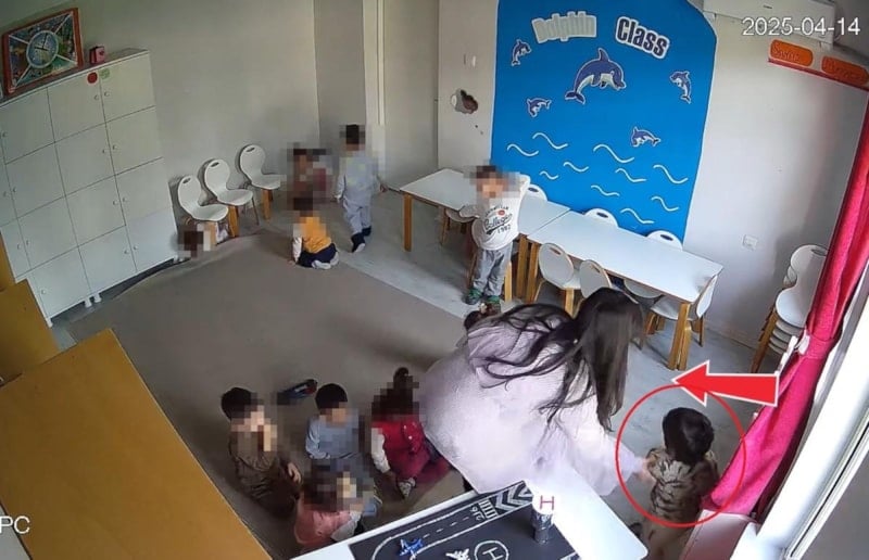 Kameralara yansıyan diğer görüntülerde çocukların ağlarken alay edildiği, ‘düşünme köşesi’ adı verilen alana zorla gönderildiği, bir diğerine ise bağırarak şiddet uygulandığı kaydedildi.