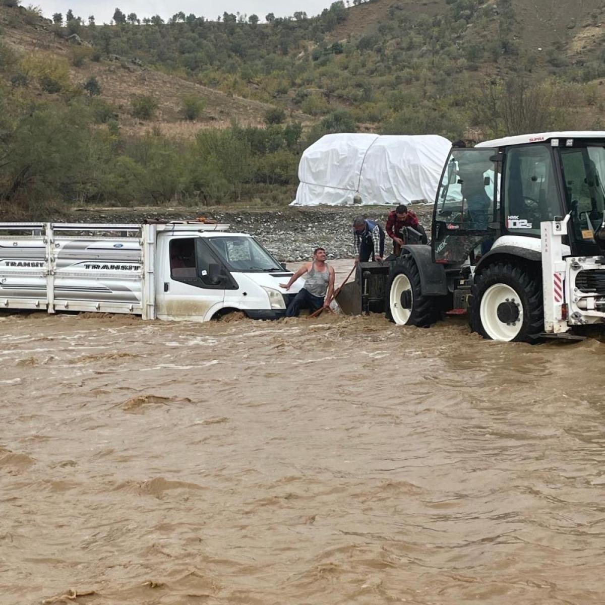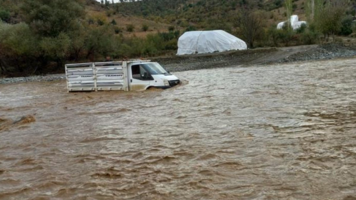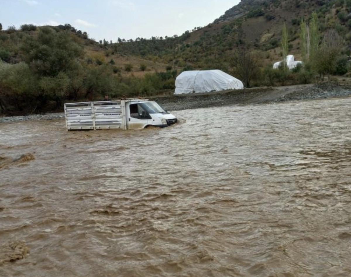 Diyarbakır'ın Kulp ilçesi Turgut Özal Mahallesi'nde yağış nedeniyle bir sürücü mahsur kaldı.