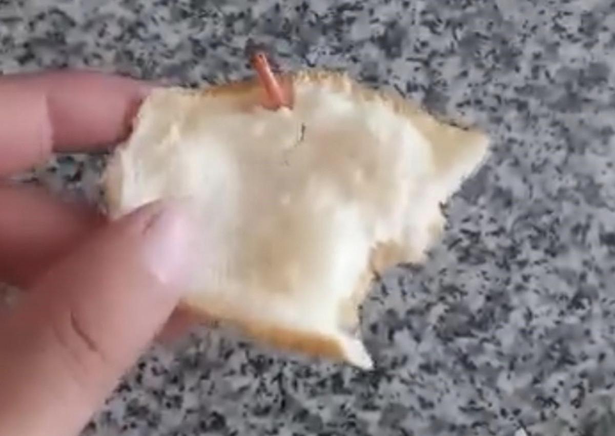 Ekmeği bölen vatandaş, kablo parçasını gördü.