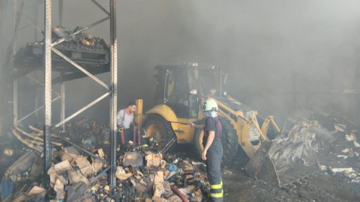 Mega Sanayi Sitesi'nde soğuk gıda imalathanesinde henüz belirlenemeyen nedenle yangın çıktı.