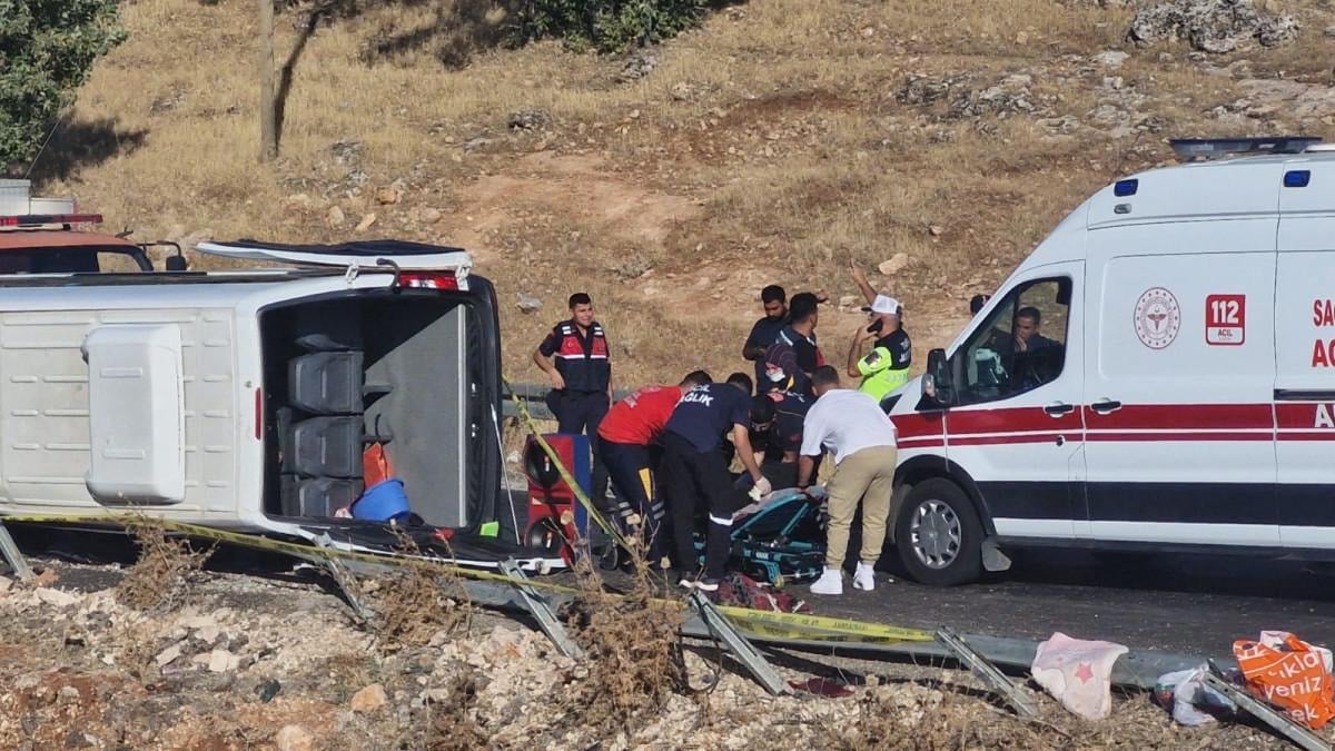 İlçeye gezi amacıyla Adıyaman'dan gelenleri taşıyan M.G. idaresindeki 02 AFJ 279 plakalı minibüs, kontrolden çıkıp demir bariyerlere çarparak devrildi.