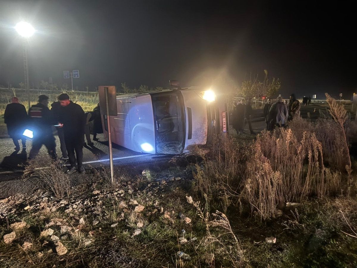 Devrilen minibüste sürücü ile birlikte 4 kişi yaralandı.