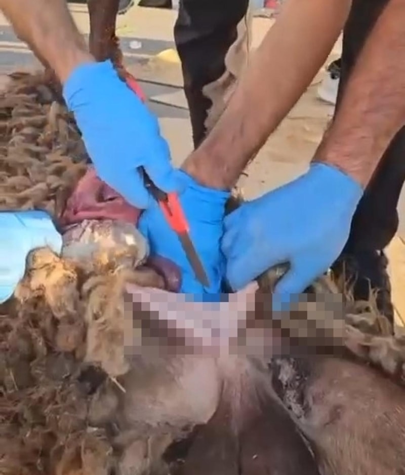 Polis, araçta ölü bir koyun buldu ve karın bölgesinin daha önce kesilmiş olduğunu fark etti.