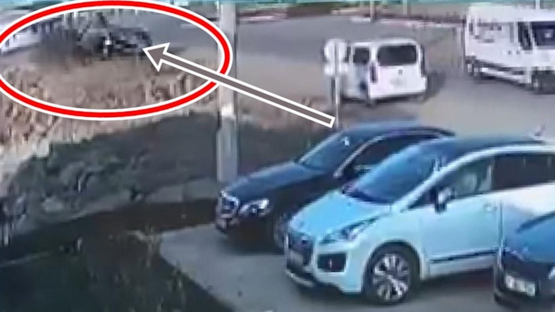 Kaza anı bir iş yerinin güvenlik kamerasınca kaydedildi.