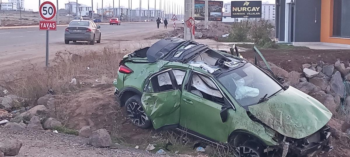 Diyarbakır'ın Kayapınar ilçesi Prof. Dr. Necmettin Erbakan Bulvarı'nda sürücüsünün kimliği henüz öğrenilemeyen otomobil, yol kenarındaki toprak ve taş yığınına çarptı.