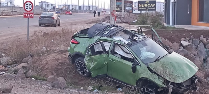 Diyarbakır'da otomobilin takla atması sonucu 3 kişi ağır yaralandı. Kaza anı bir iş yerinin güvenlik kamerasına yansıdı.