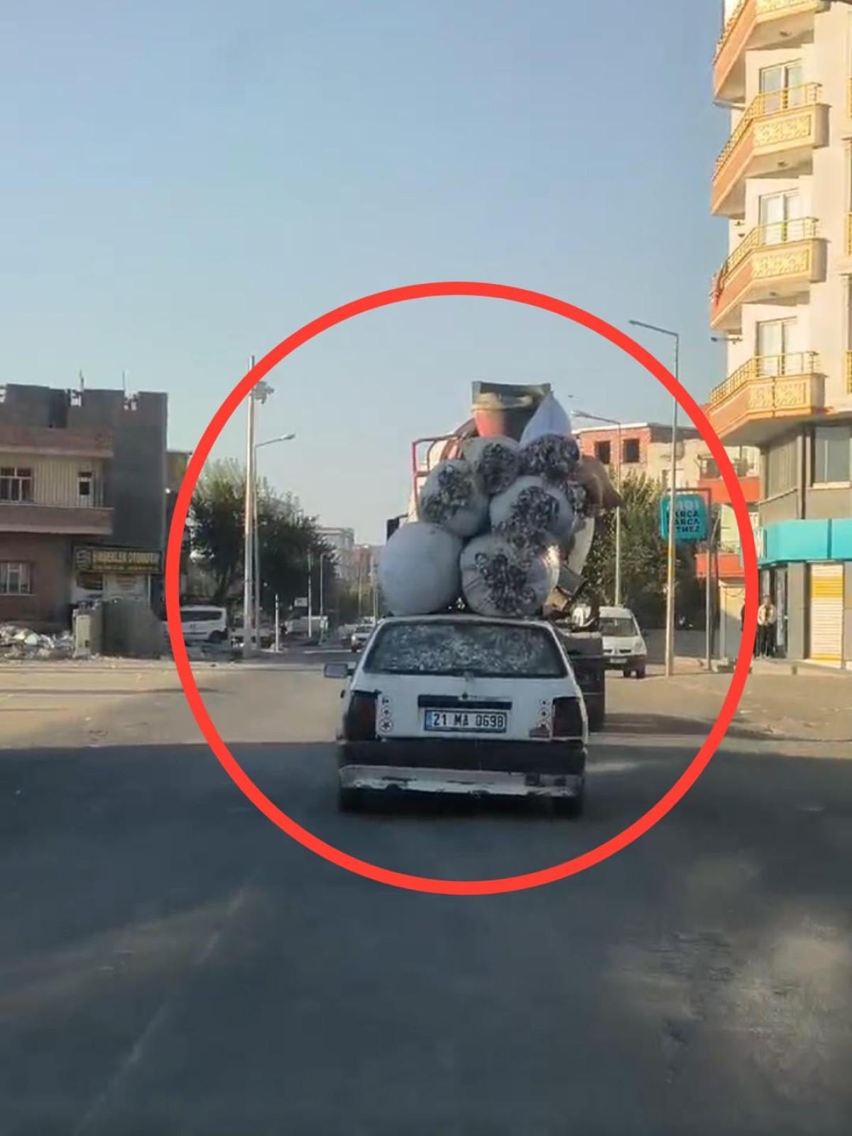 Çuvallarla dolu otomobil, bir süre trafiğin içinde yer aldıktan sonra gözden kayboldu. Bu sıra dışı görüntüler, yolda karşılaşanlar arasında merak uyandırdı.