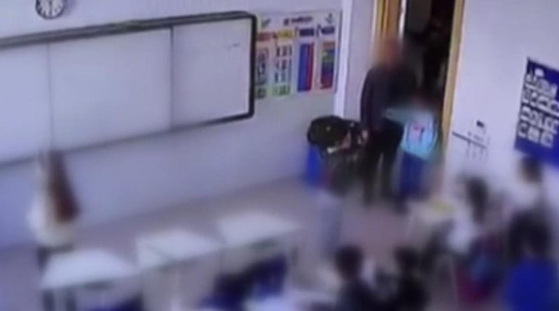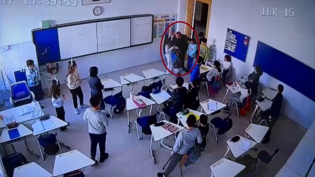 Olay, sınıfın güvenlik kamerasına yansıdı.