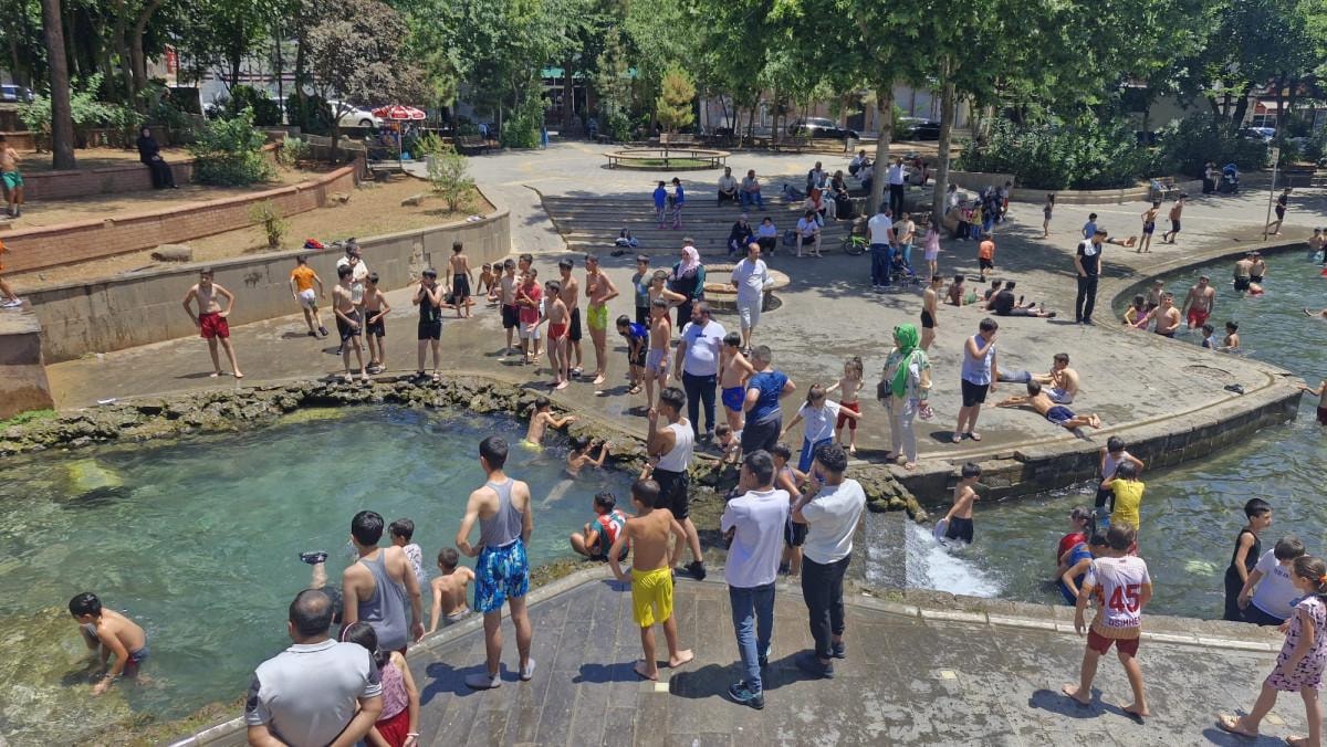 Parkta çocuklarını izleyen ebeveynler ise süs havuzunun çevresindeki gölgelik alanlarda oturarak çocuklarının serinlemesini bekledi.