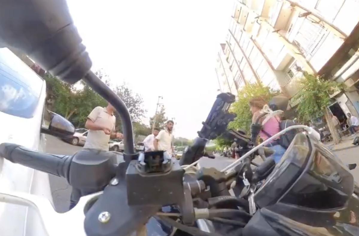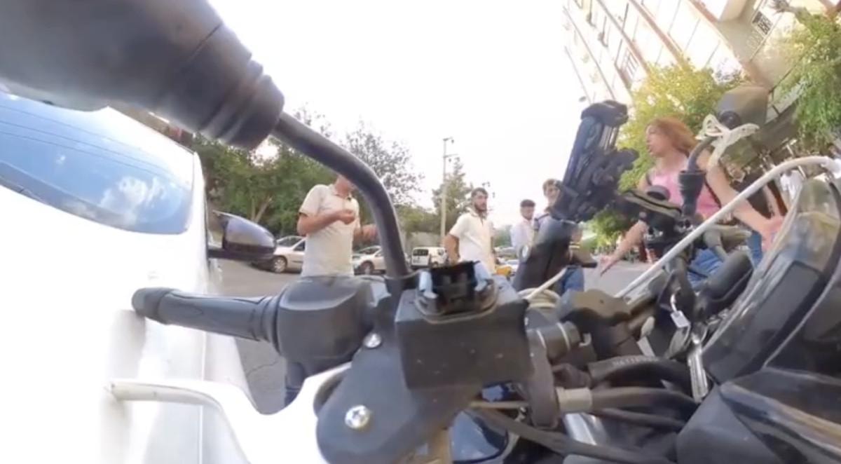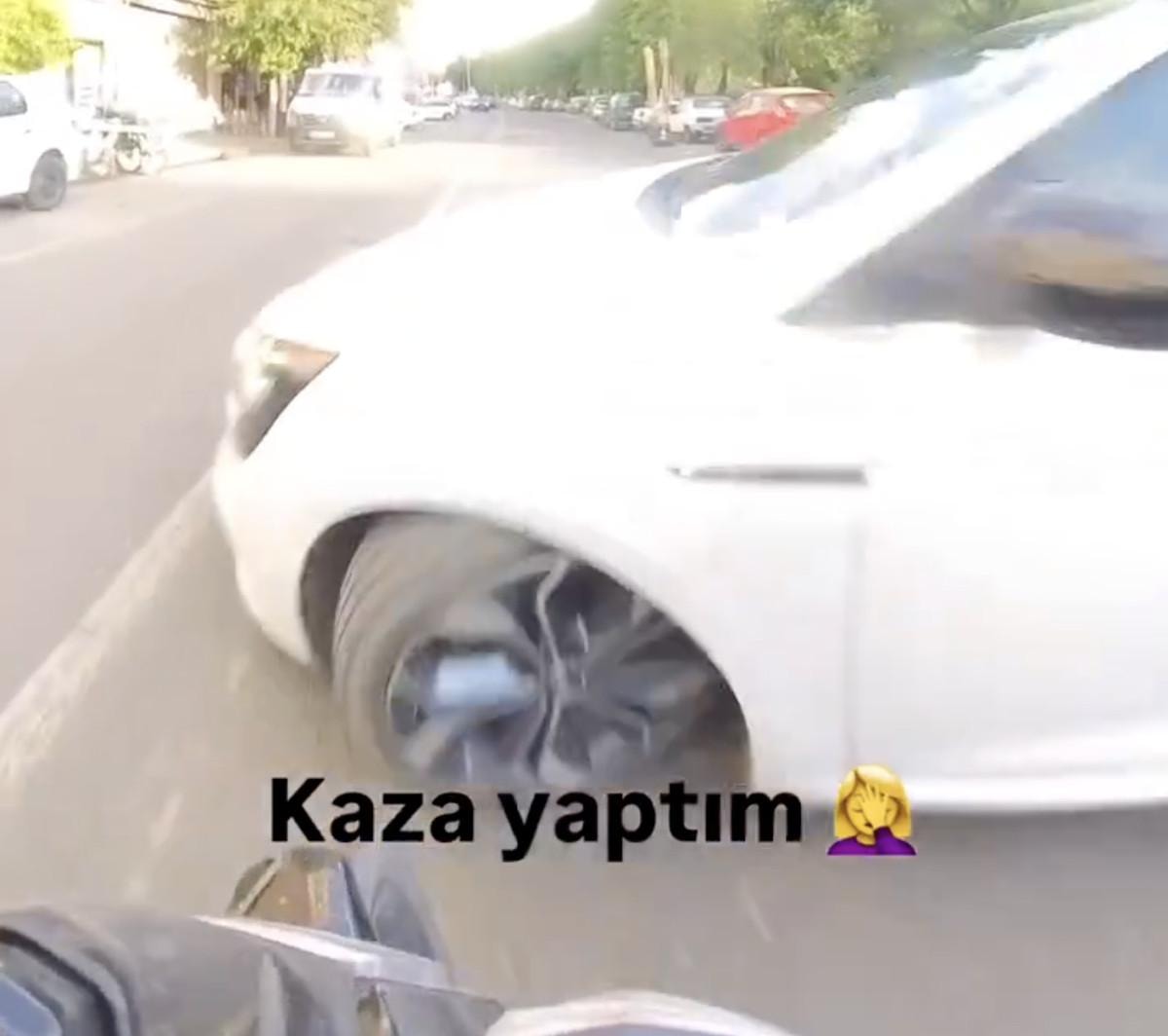 "Sola kırmaya çalıştım ki kurtarayım diye ama abi hızını kontrol edemedi maalesef" ifadeleriyle görüntülerini paylaştığı kazanın ardından motosikletli, kendine gelmeye çalışırken, araba sürücüsüyle tartışması devam etti.