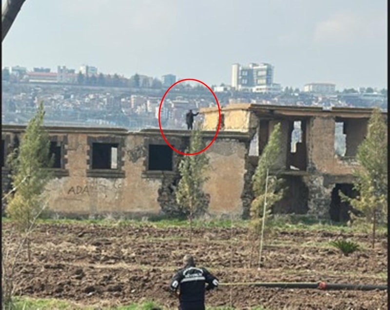 Şüpheli, şikayet üzerine olay yerine sevk edilen polis ekiplerine, tarihi bir binanın üzerine çıkıp, tabancasını başına dayayarak bir süre direndi.